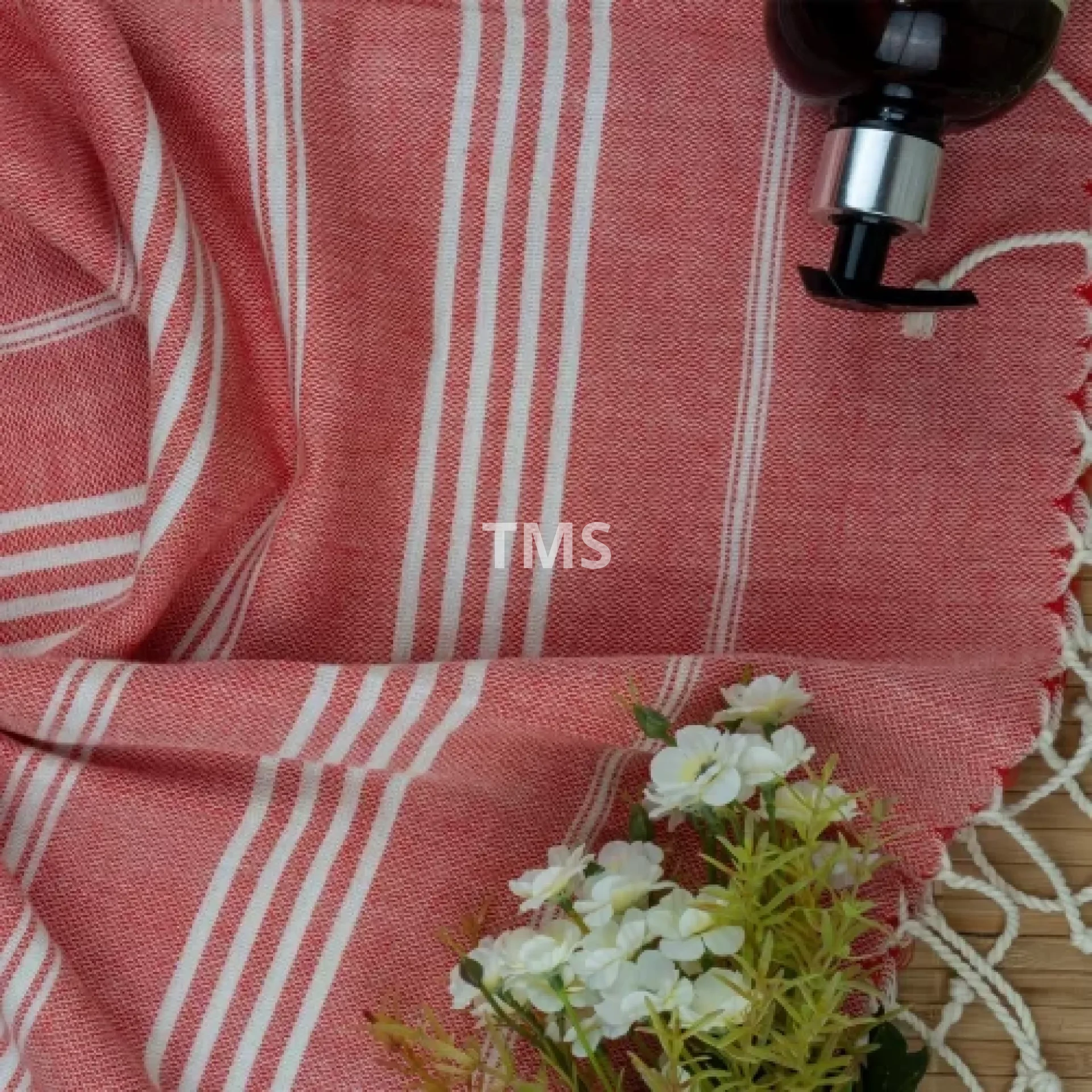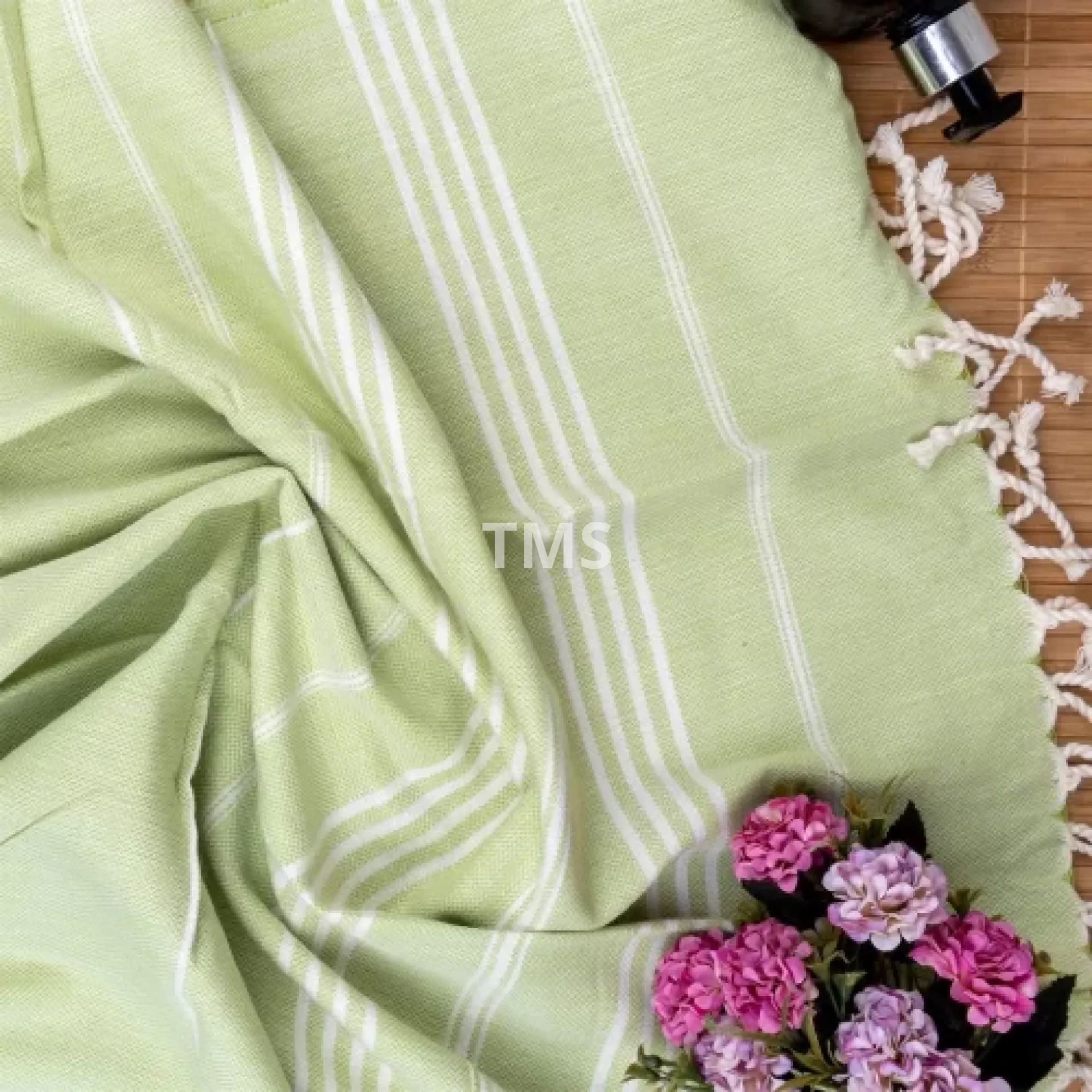 Our product is cotton and hand-woven on the loom, the end fringes are handmade.